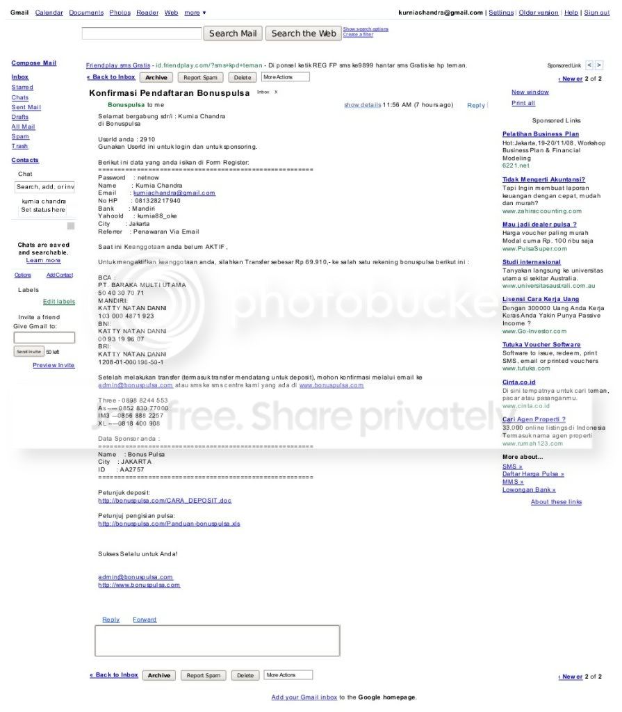 Anda juga bisa memperoleh informasi di atas dengan mengecek ke alamat email Anda seperti di bawah ini: